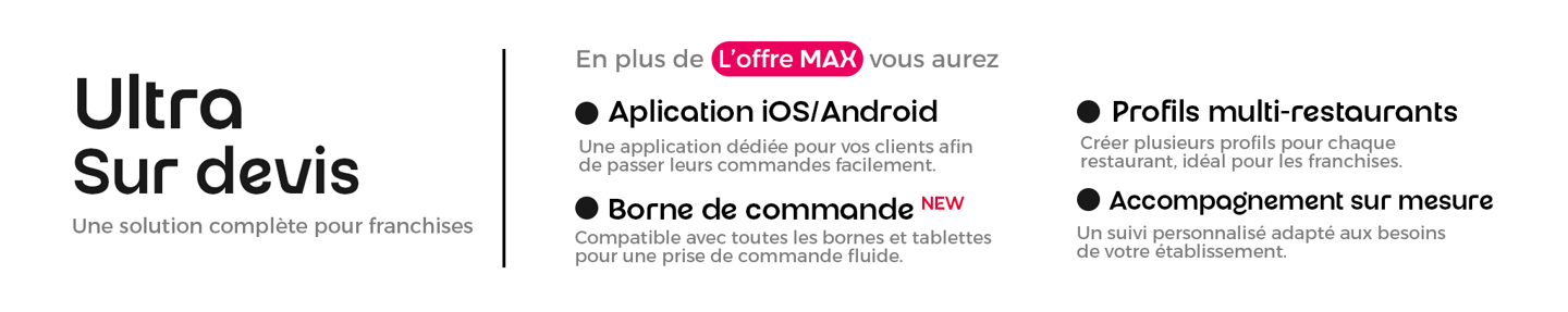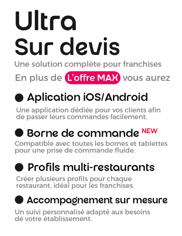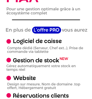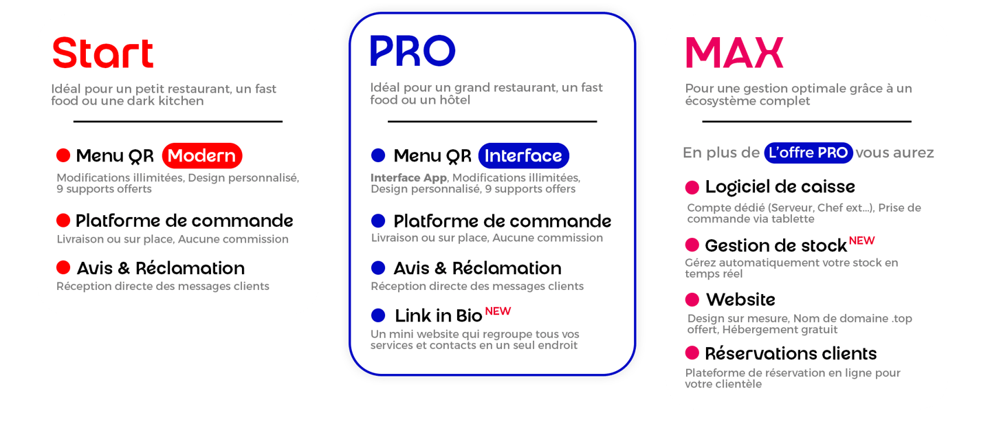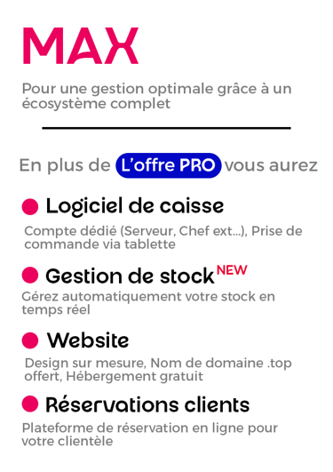 Restolink propose 3 formules adaptées aux besoins et à la taille de votre restaurant.